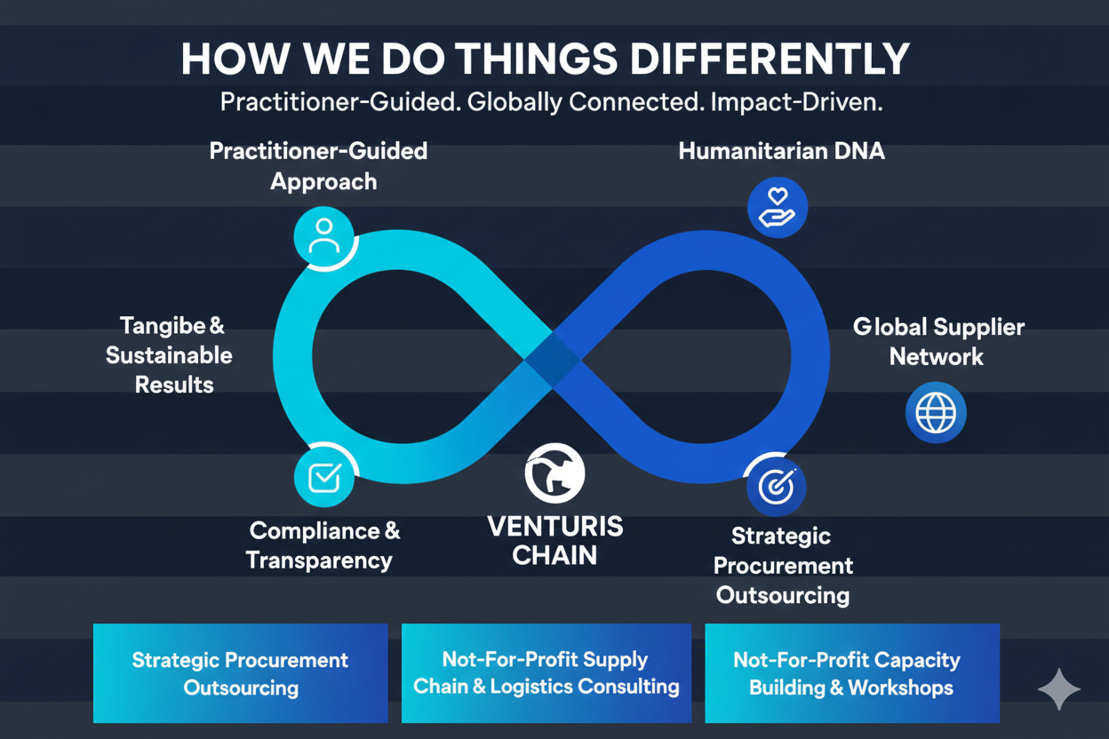 At Venturis Chain, our methodologies aren’t theoretical – they’re forged in the field. Established in 2020, we are a Practitioner-Guided firm, founded by individuals with decades of direct, on-the-ground experience in complex humanitarian and global supply chain operations. This firsthand knowledge from Africa, the Americas, APAC, Europe, and the Middle East is the bedrock of our approach, ensuring that every solution we deliver is practical, realistic, and precisely aligned with your real-world needs. We don’t just advise; we’ve done it.